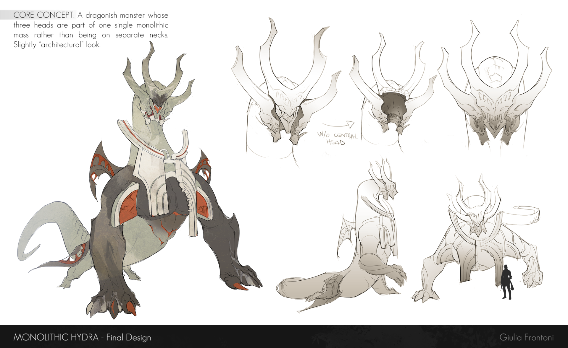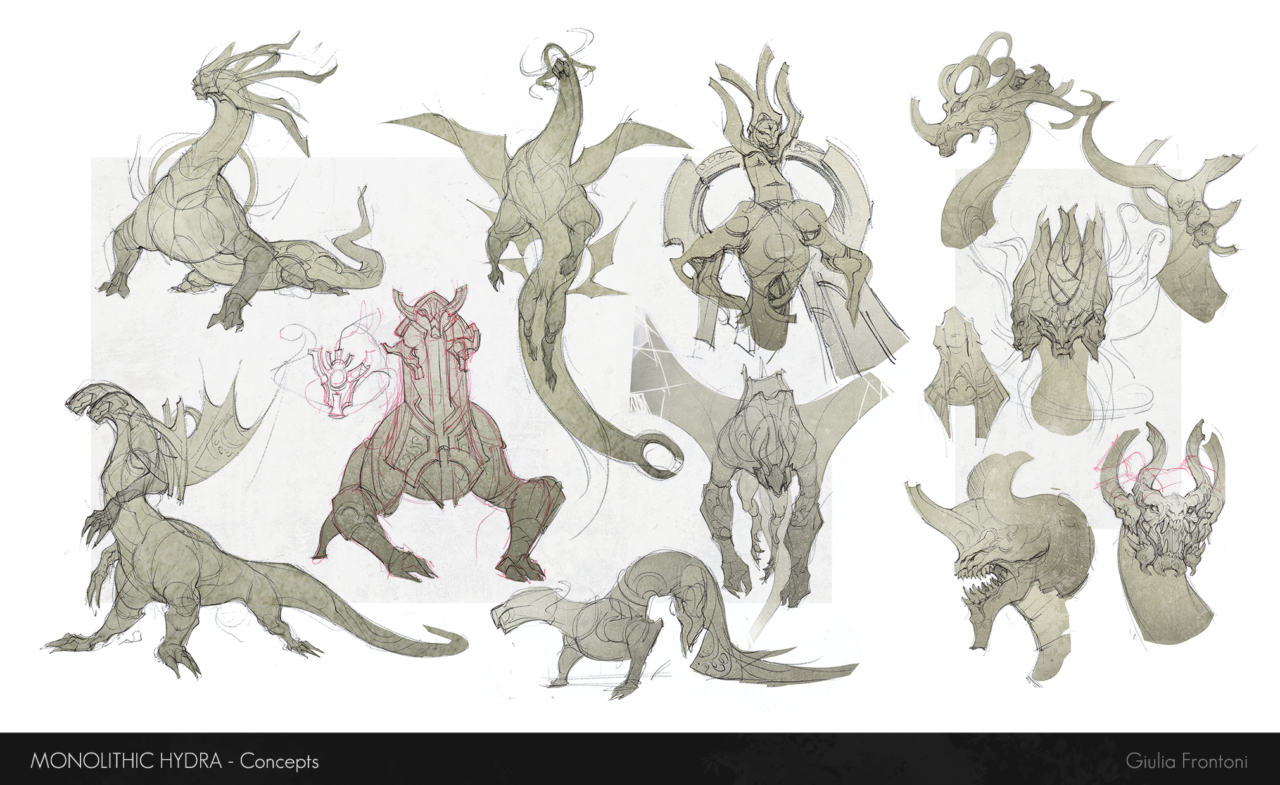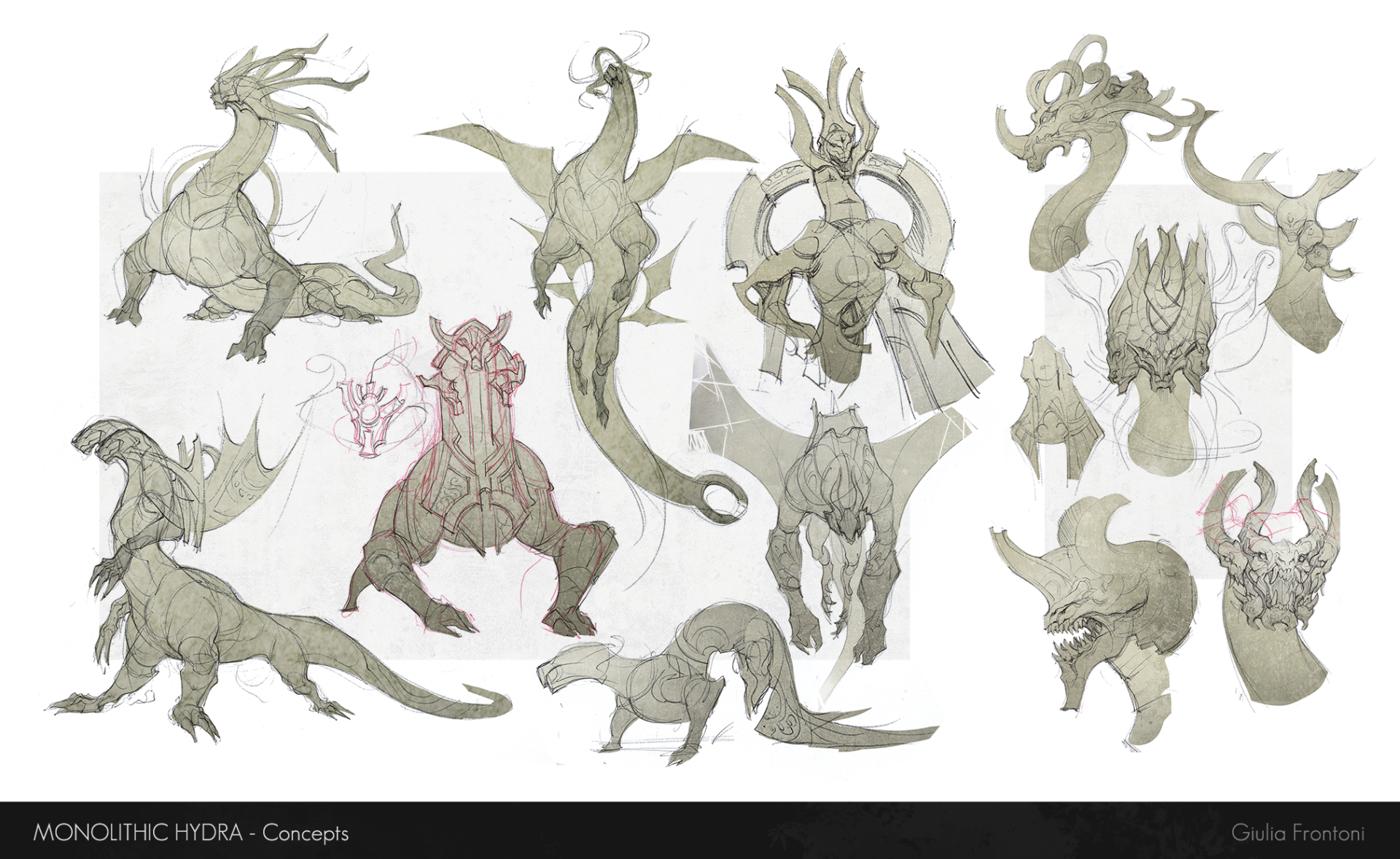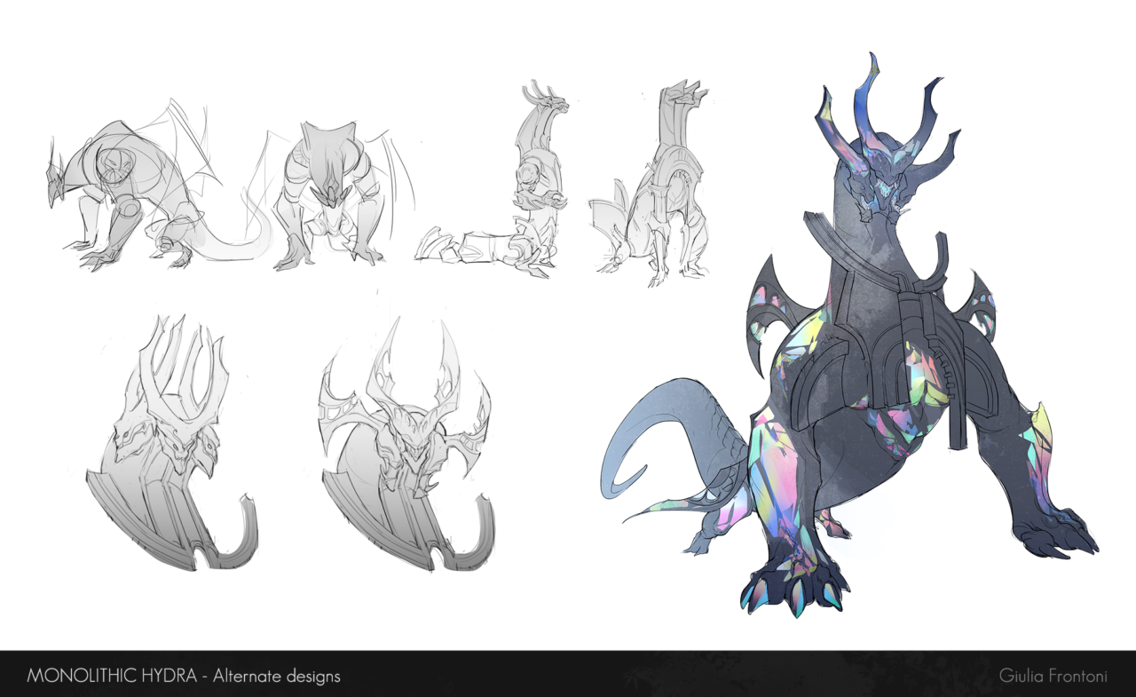 Composition studies and final color sketch for a Shagaru Magala illustration I’m working on