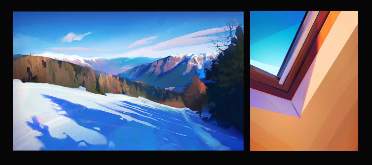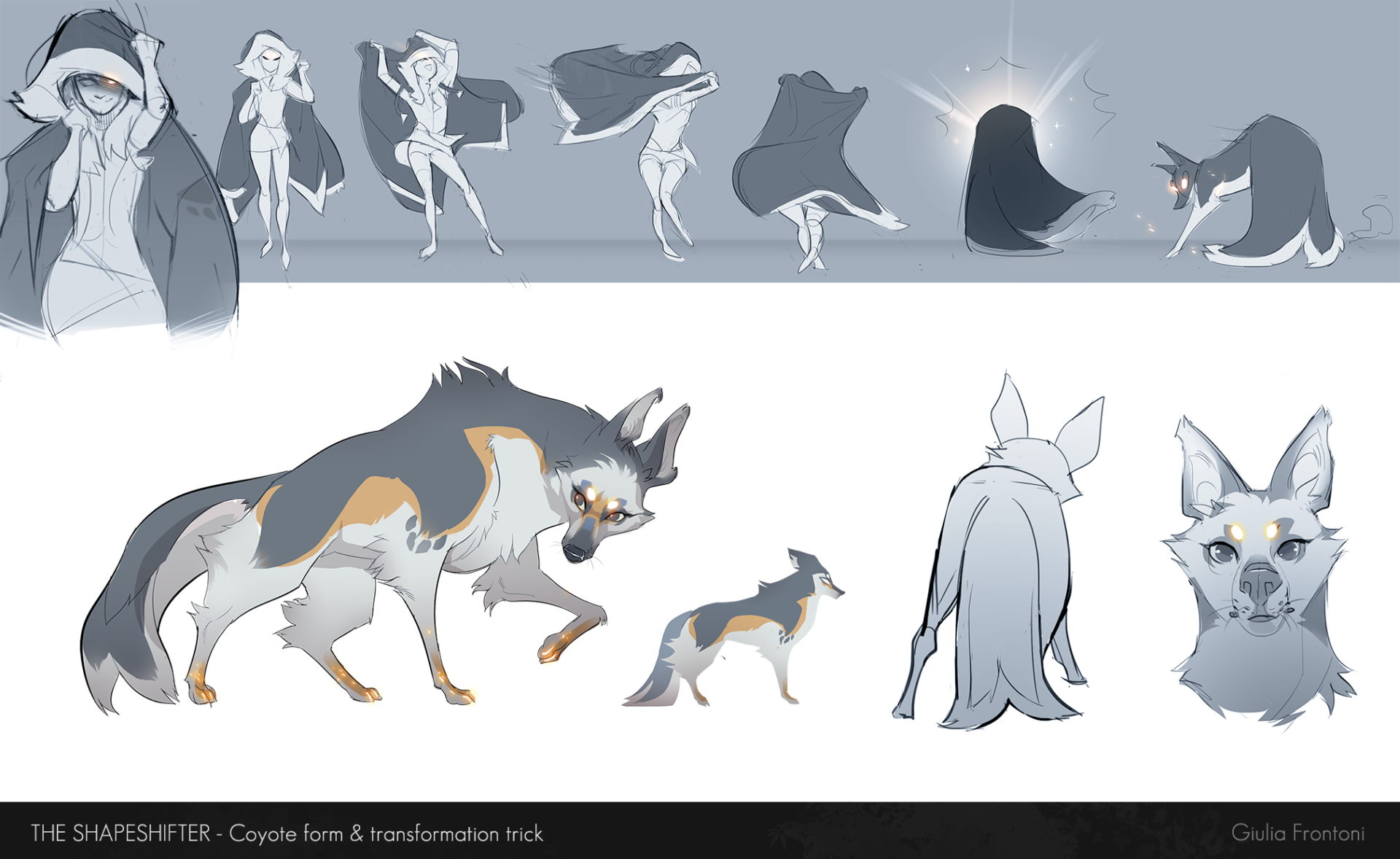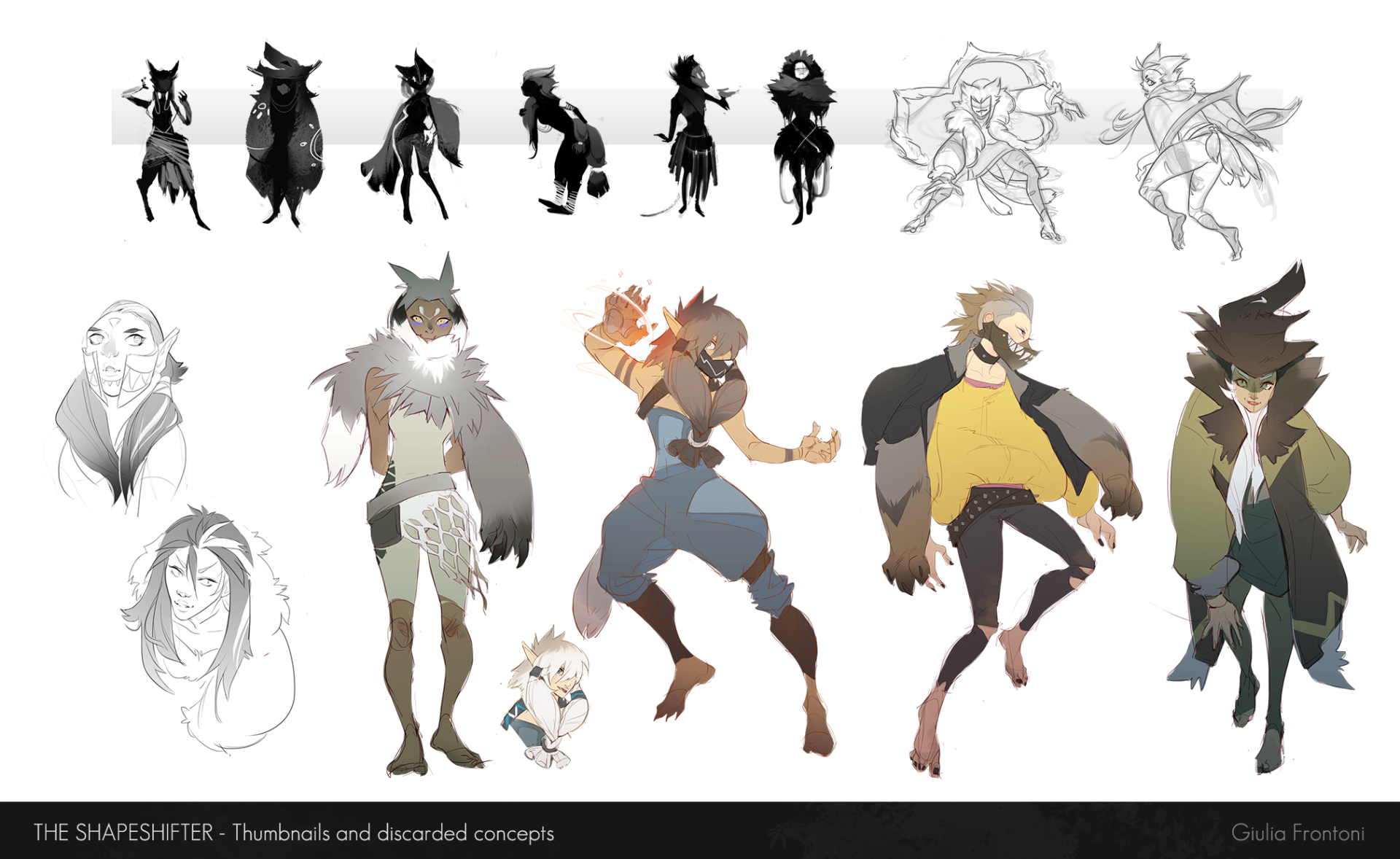 Composition thumbnails and palette explorations for my Huntress splash illustration